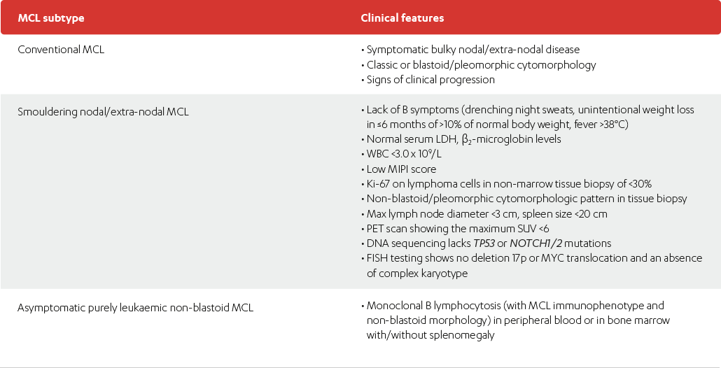 TABLE 1. CLINICAL FEATURES OF MCL SUBTYPES2